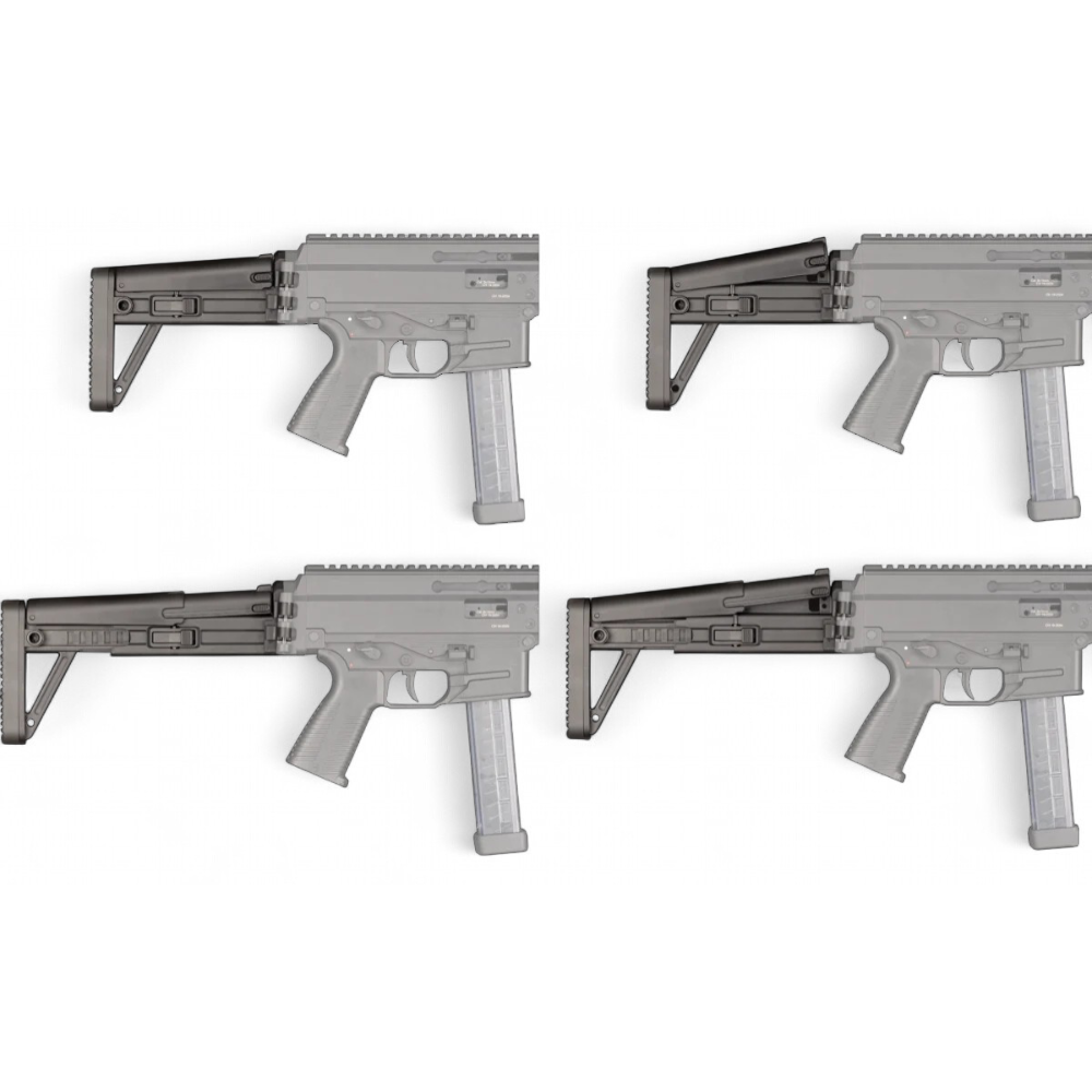 Składana kolba MBT ma niski profil i może być złożona na potrzeby CQC lub transportu, a błyskawicznie rozłożona jednym naciśnięciem przycisku. Długość linii celowania oraz wysokość policzka są regulowane, co pozwala dopasować broń do indywidualnego strzelca, a gumowa stopka kolby dodatkowo redukuje odrzut.