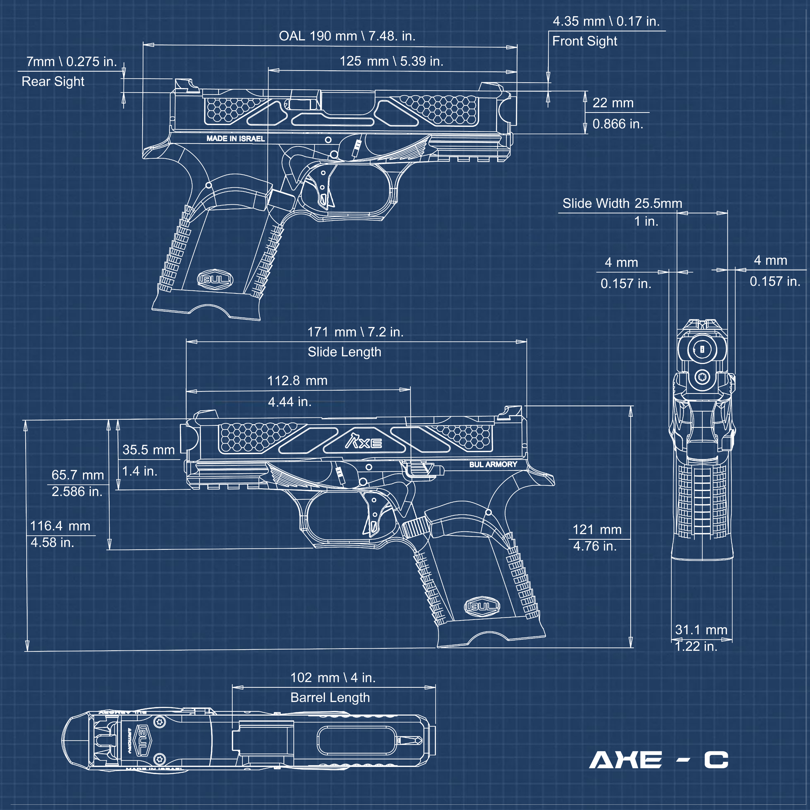 BUL Armory pracowało intensywnie nad tym, by ich pierwszy pistolet bezkurkowy - AXE był najlepszy w swojej klasie, dorównując legendzie innych konstrukcji producenta. AXE oparty jest o platformę Glock generacji 3, przewyższając i rozwijając oryginał niemal pod każdym względem, zachowując jednak pełną kompatybilność części i magazynków.