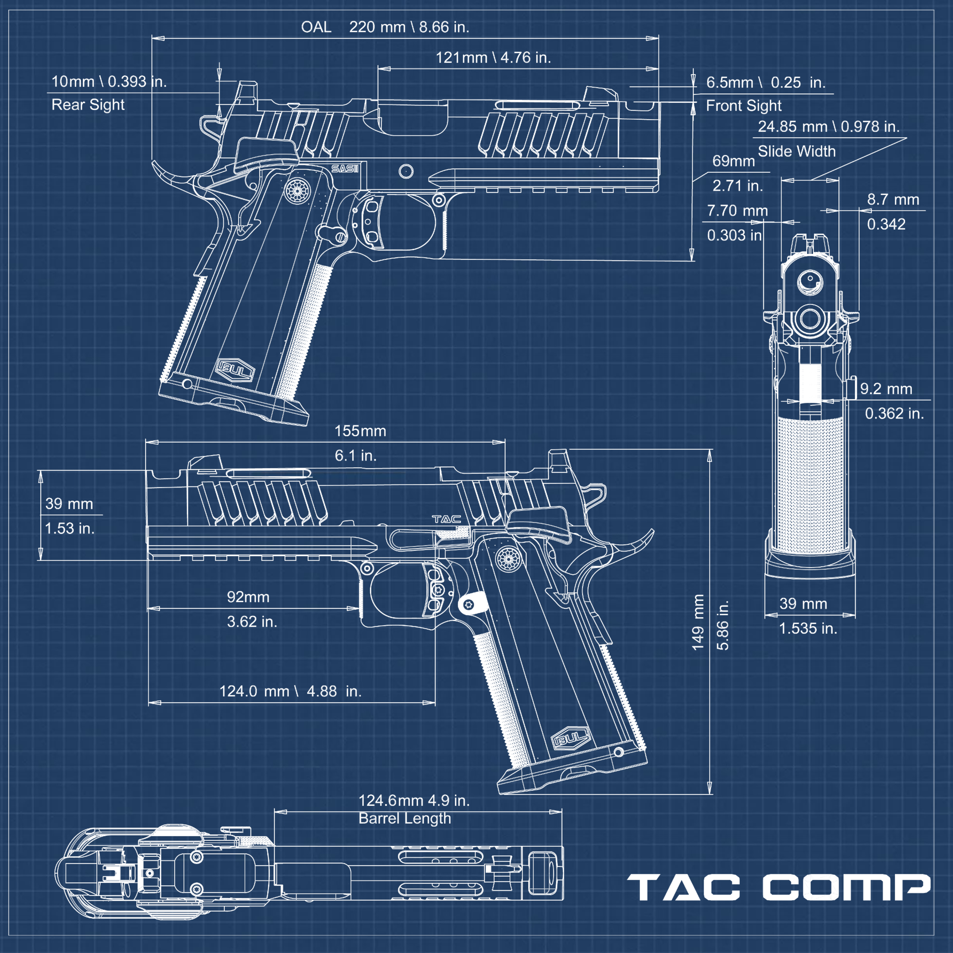 Pistolety SAS wyposażone są we wszystkie gadżety i wodotryski w które każdy strzelec IPSC chciałby zainwestować w przyszłości modyfikując 1911 standardowej dywizji.