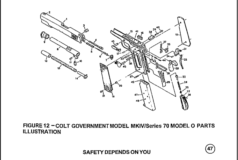 • Manualny bezpiecznik kciukowy (thumb safety), bezpiecznik chwytowy (grip safety) oraz pozycja half-cock na kurku