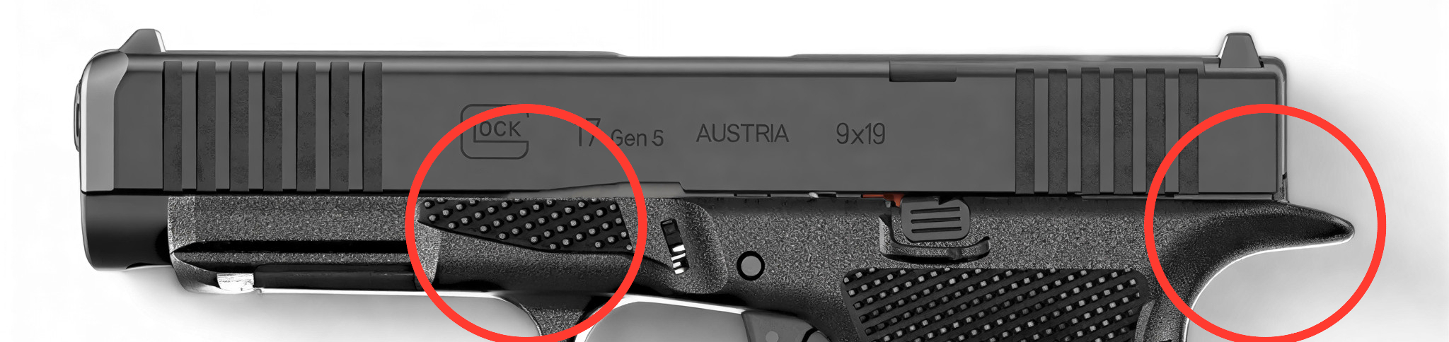 Płaski język spustowy: Każdy pistolet Gen6 jest standardowo wyposażony w spust z płaską powierzchnią, zapewniającą stałe ułożenie palca i stałą siłę nacisku. Spust zachowuje system Safe Action® zapewniający bezkompromisowe bezpieczeństwo i niezawodność.